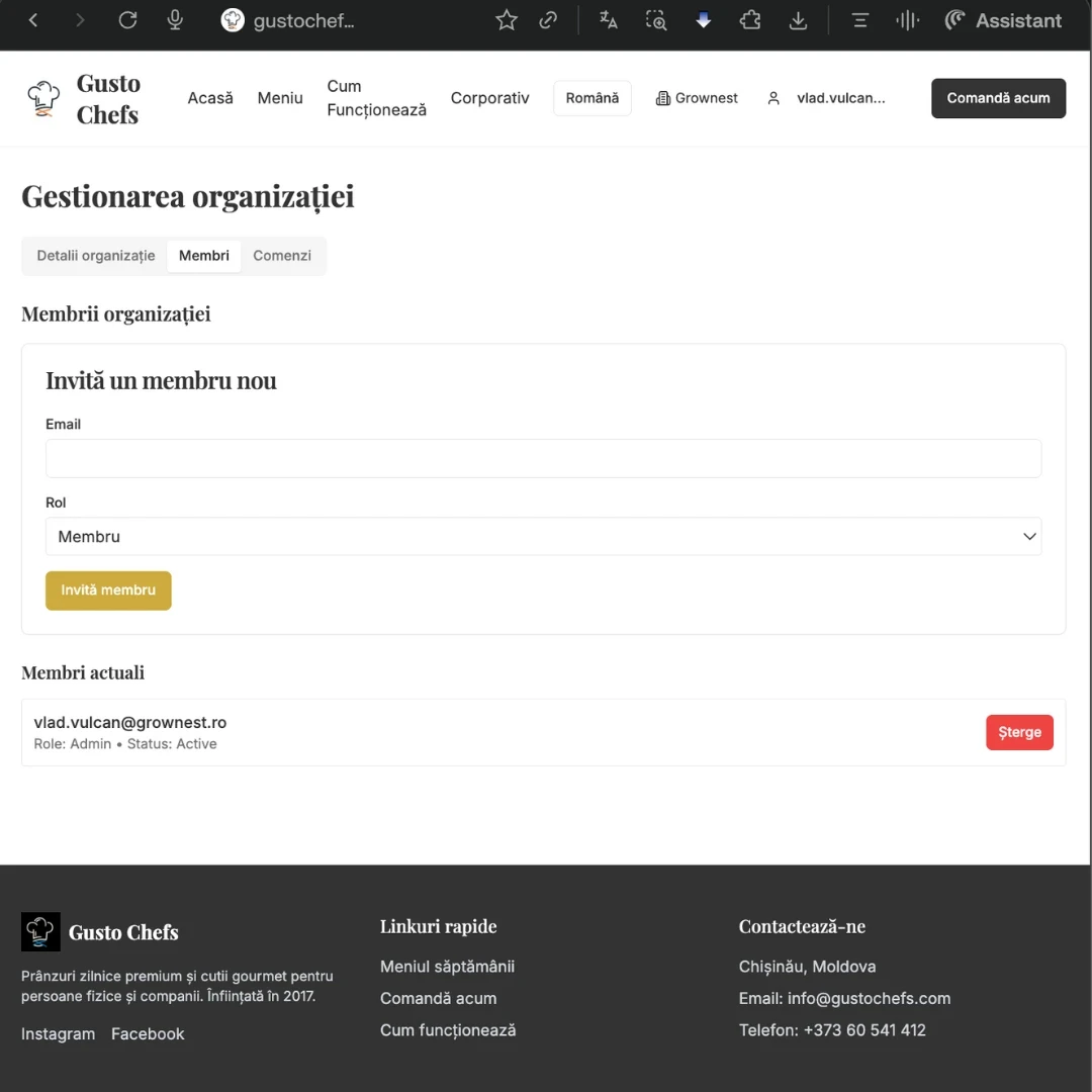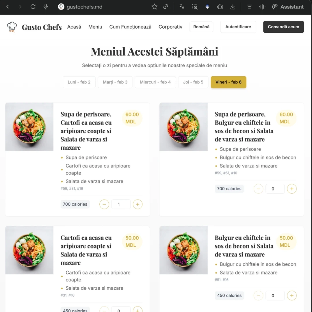 Am dezvoltat platforma și aplicația web pentru Gusto Chefs, facilitând procesul de comandă online pentru preparate culinare.