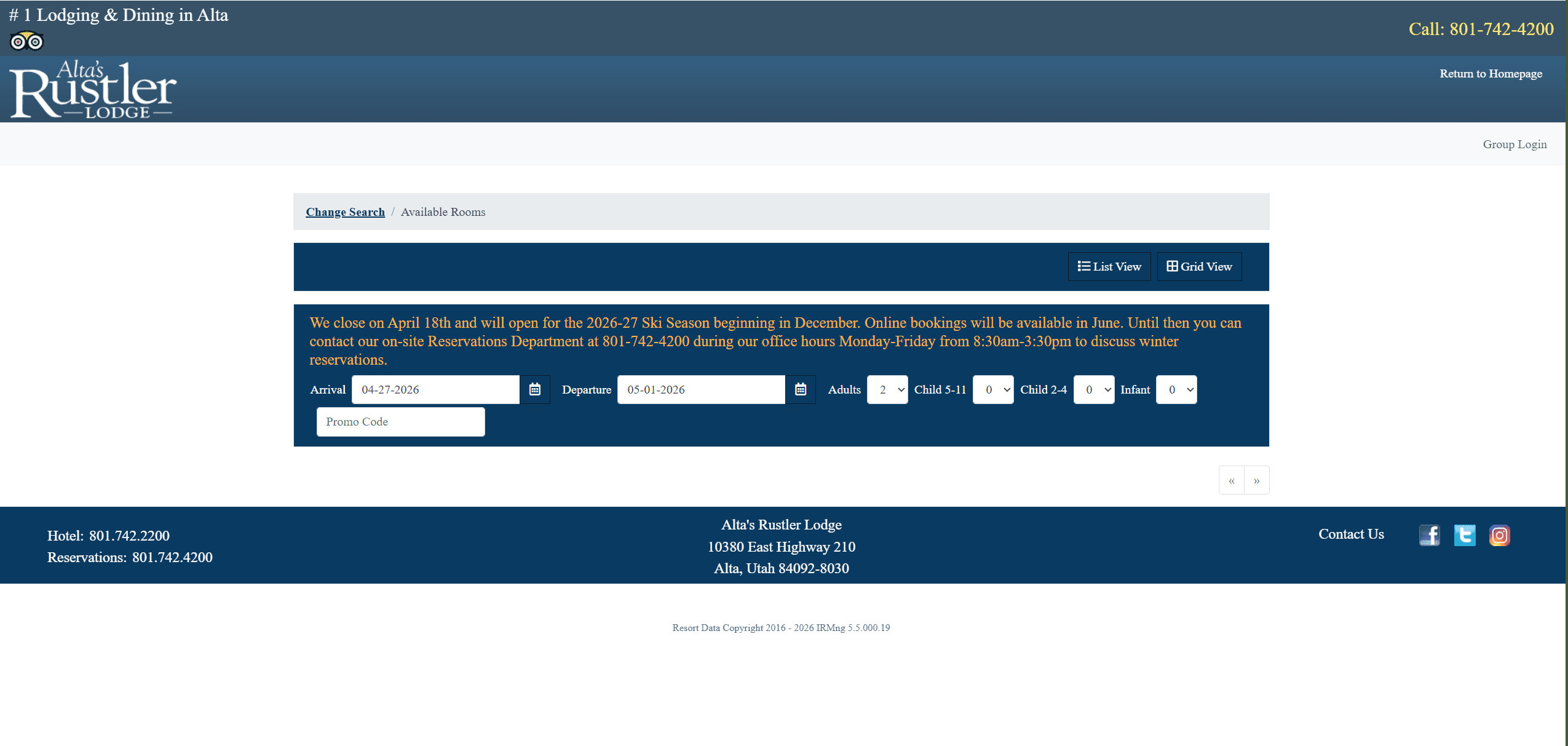 Sistemul integrează un modul central de căutare a disponibilității, permițând selectarea exactă a datelor și a numărului de oaspeți. Sunt activate widget-uri conectate la date în timp real care afișează condițiile meteo și raportul stratului de zăpadă (Snow Report), livrând informații critice direct în interfață.