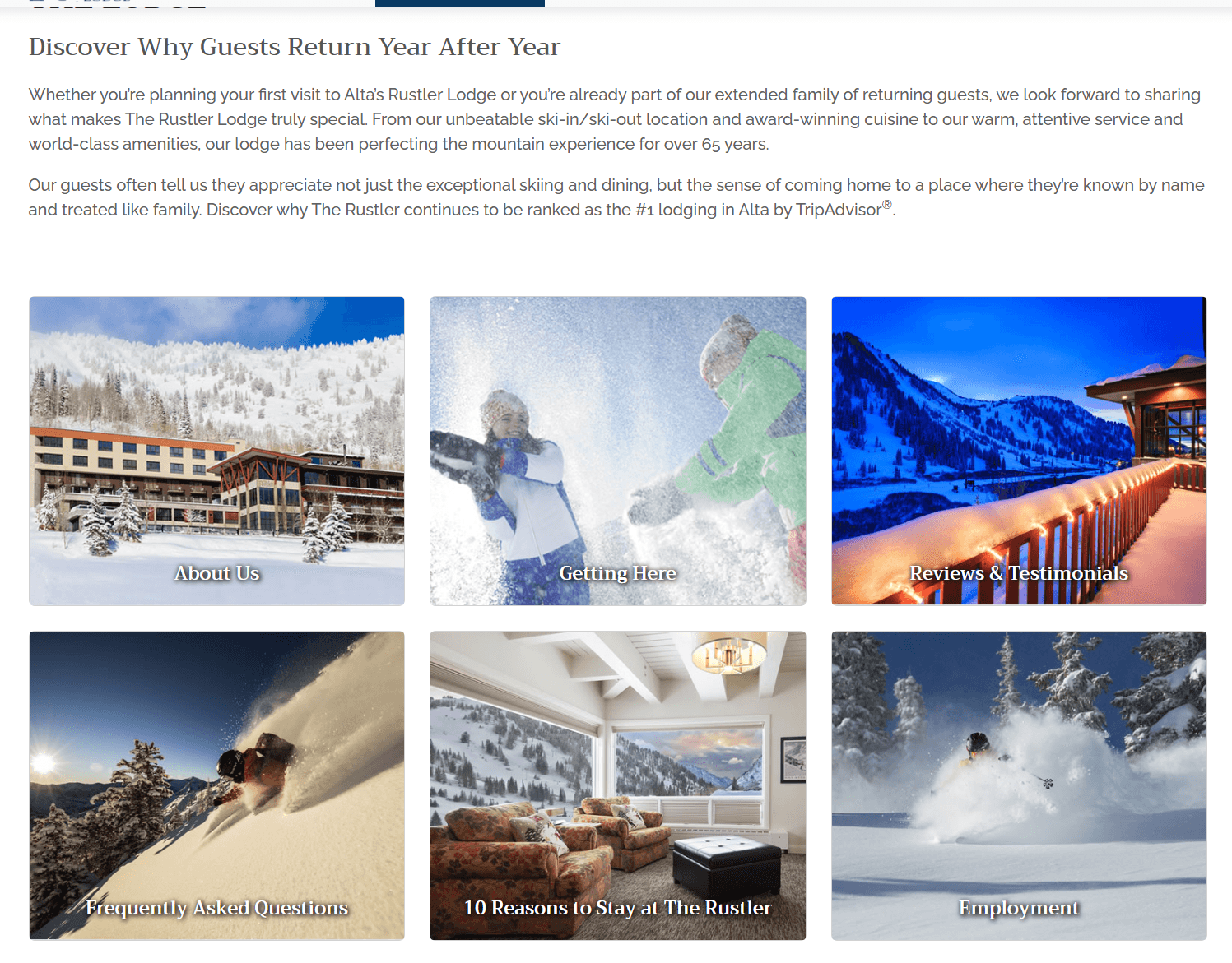Interfața folosește o paletă cromatică clasică și un layout aerisit pentru a pune în valoare fotografia de locație. Designul susține o prezentare coerentă a facilităților complexe (ski, spa, dining), asigurând o estetică rafinată la fiecare punct de contact digital, fără zgomot vizual.