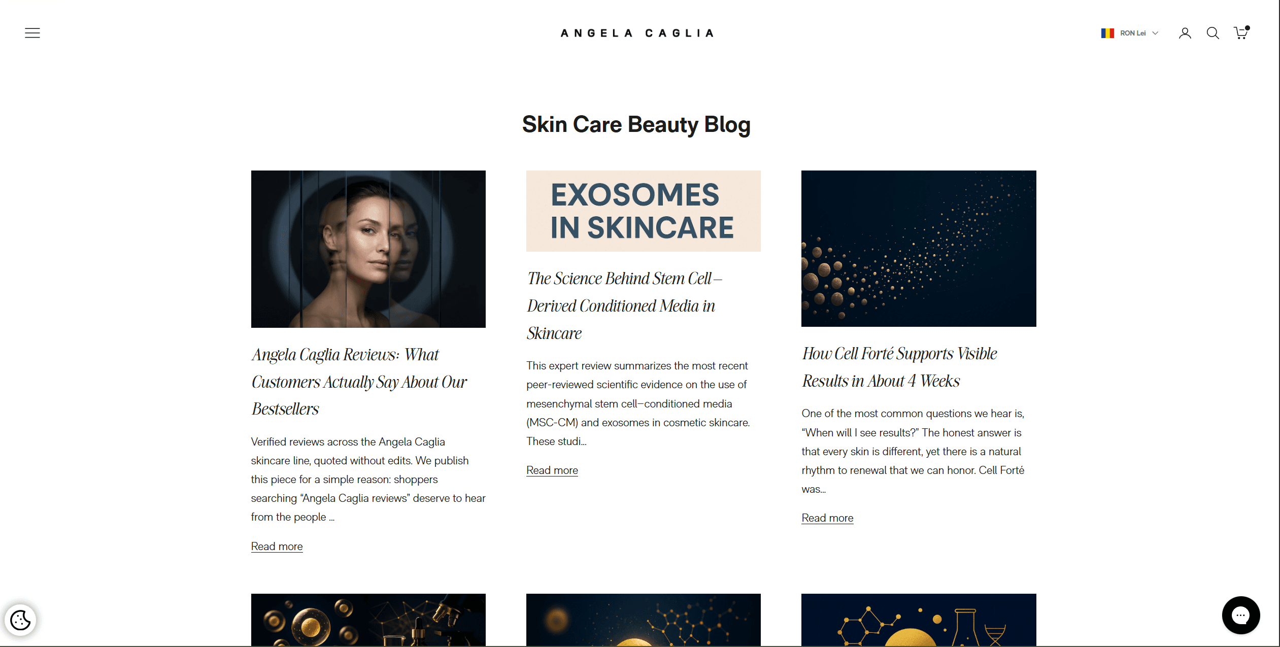 Platforma este structurată pe Shopify pentru a transpune inovația științifică (tehnologia cu exozomi) într-o experiență e-commerce de lux. Arhitectura susține un catalog exclusivist, transformând rigoarea cercetării medicale și estetica high-end într-un instrument digital scalabil.