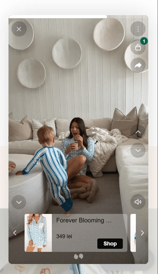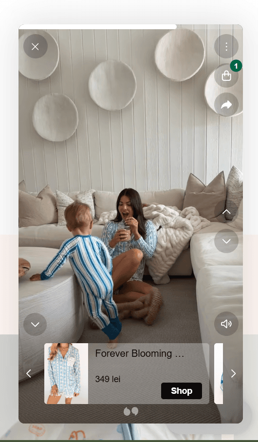 Platforma integrează nativ module de tip „shoppable video” care transformă conținutul generat de utilizatori (UGC) direct în instrument de conversie. Sunt activate playere video verticale ce permit vizualizarea produselor în context real, oferind opțiunea de achiziție rapidă („Shop”) direct din interfața media, scurtând distanța dintre descoperirea socială și finalizarea comenzii.