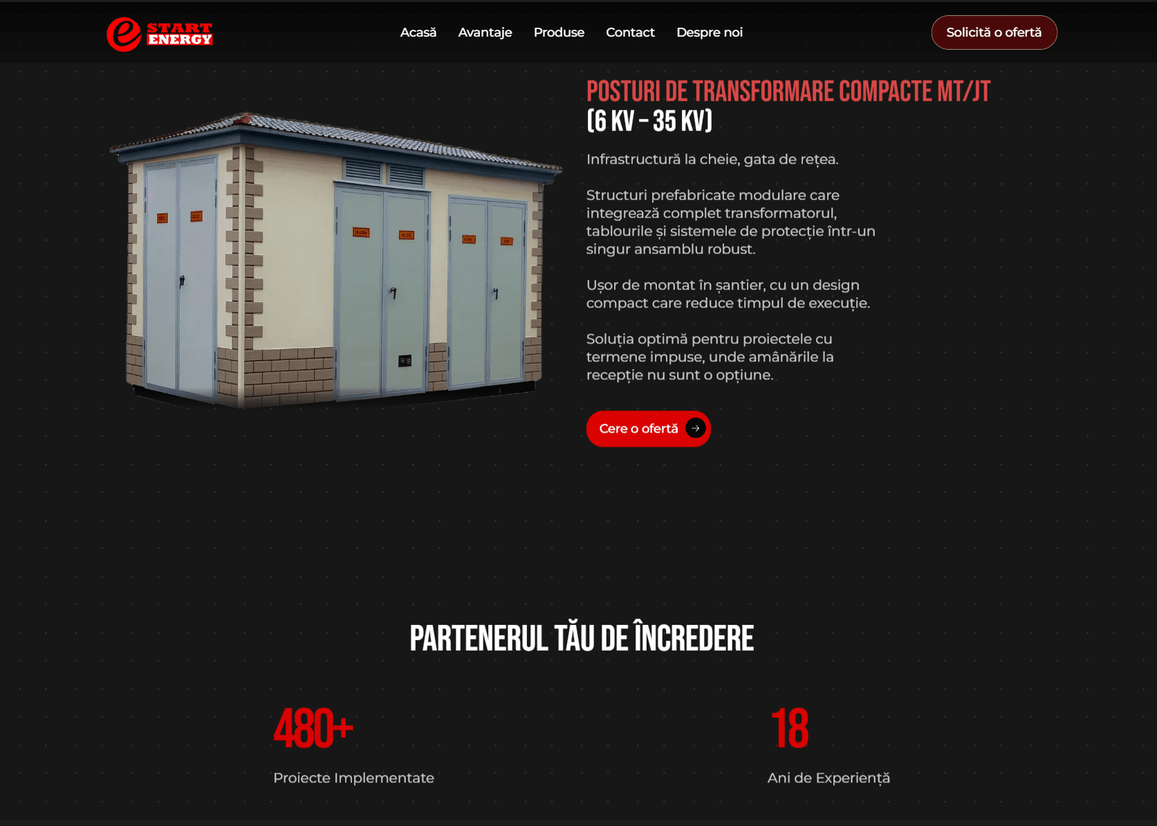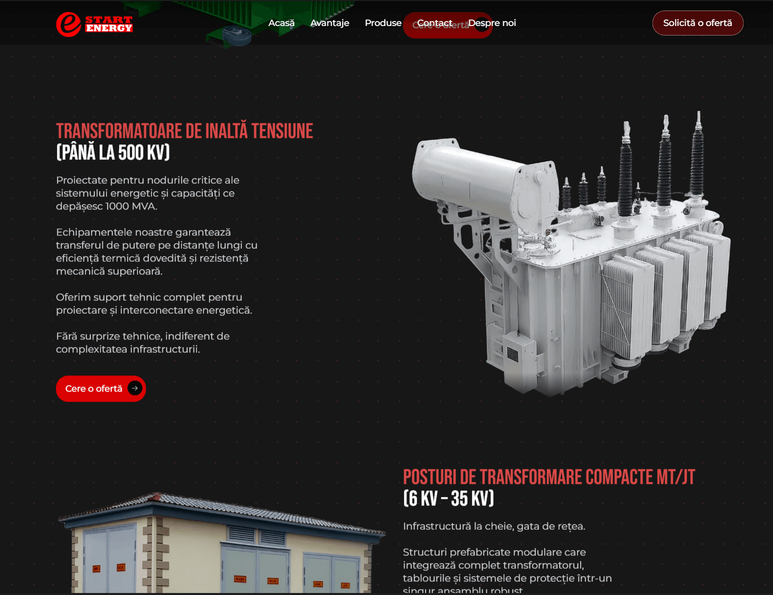 Website-ul este dezvoltat ca un instrument strategic de generare a lead-urilor industriale. Se translatează expertiza tehnică (echipamente de medie și înaltă tensiune) într-o platformă robustă, optimizată pentru a capta și procesa cereri complexe din partea operatorilor și dezvoltatorilor.
