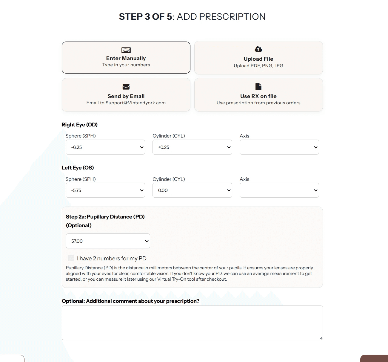 Sunt implementate module custom pentru proba virtuală a ochelarilor, aducând produsul mai aproape de utilizator prin realitate augmentată integrată direct în browser. În paralel, sistemul de comandă permite încărcarea și introducerea manuală a parametrilor oftalmologici (PD, sferă, cilindru), conectând experiența de vizualizare cu rigoarea medicală.