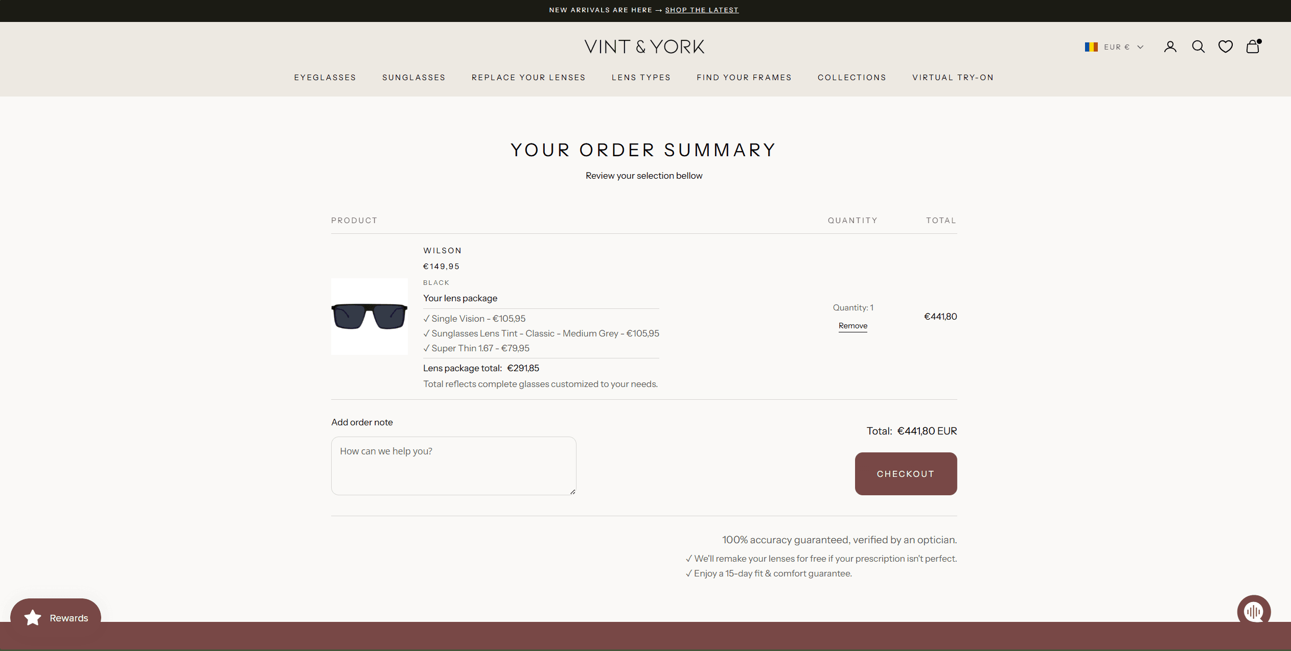 Arhitectura include un program de tip „Rewards” care activează retenția prin deblocarea de beneficii exclusive. Procesul de checkout și sumarul comenzii sunt optimizate pentru a oferi claritate absolută asupra prețului final (compus din rame, lentile și upgrade-uri), reducând tehnic rata de abandon a coșului.