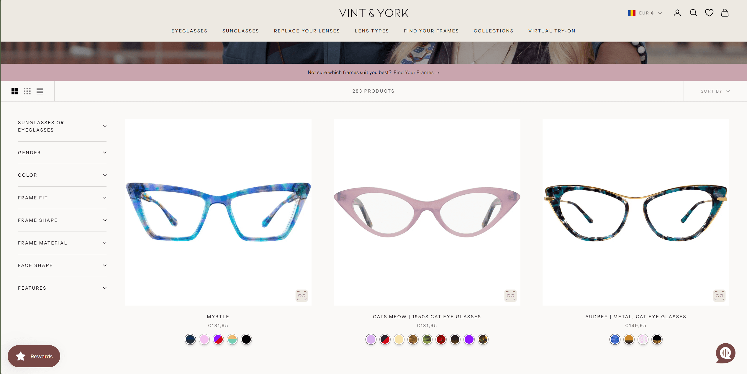 Platforma este structurată ca o infrastructură e-commerce capabilă să susțină o experiență de achiziție tehnică. Se transformă selecția ramelor și a lentilelor de prescripție dintr-un proces medical rigid într-o sesiune de shopping fluidă, ancorată într-o estetică vintage modernizată.